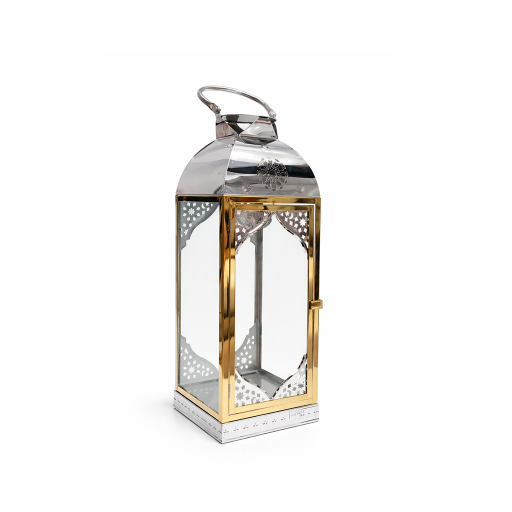 فانوس رمضان كلاسيك معدن – حجم كبير بتصميم شيك يجمع بين الفضي والذهبي