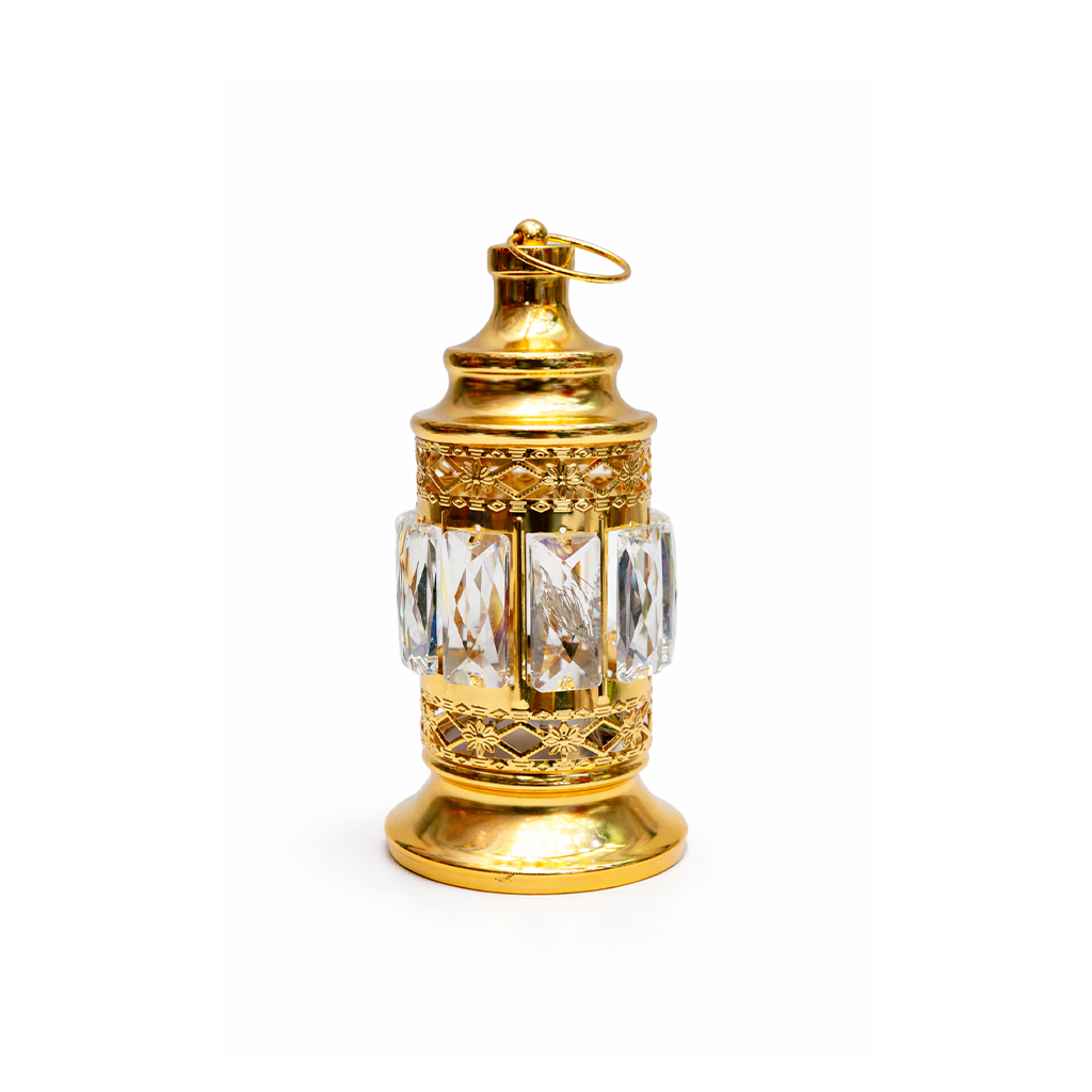 مصنوع بشكل تقليدي جميل، مع لمسة ذهبية وزجاج شفاف متقطّع يعكس النور بشكل راقي وهادي.